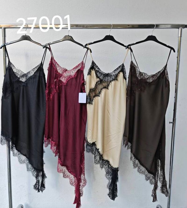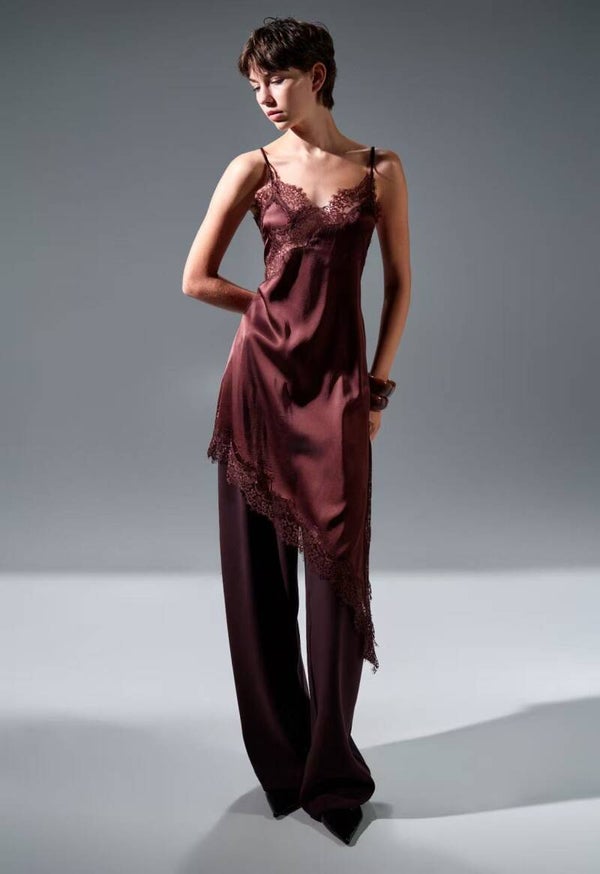 Σατέν φόρεμα τύπου Lingerie με λεπτομερείς δαντέλας.